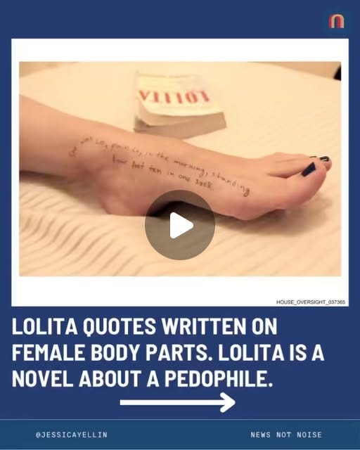 Photo Evidence: House Democrats had already released 68 photos from Epstein’s estate on Thursday. The photos lack context, but include several celebrities. They include Woody Allen, Google’s Sergey Brin, and New York Times columnist David Brooks — who just weeks earlier compared Democratic interest in the Epstein files to the QAnon conspiracy, (and did not mention any association with Epstein). Several photos appear to show parts of a woman’s body, on which quotations from Lolita have been written. The lines are taken from the opening of the infamous book, in which the protagonist, a middle-aged man, declares his love for the eponymous young girl who he subsequently kidnaps and sexually abuses.